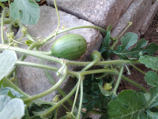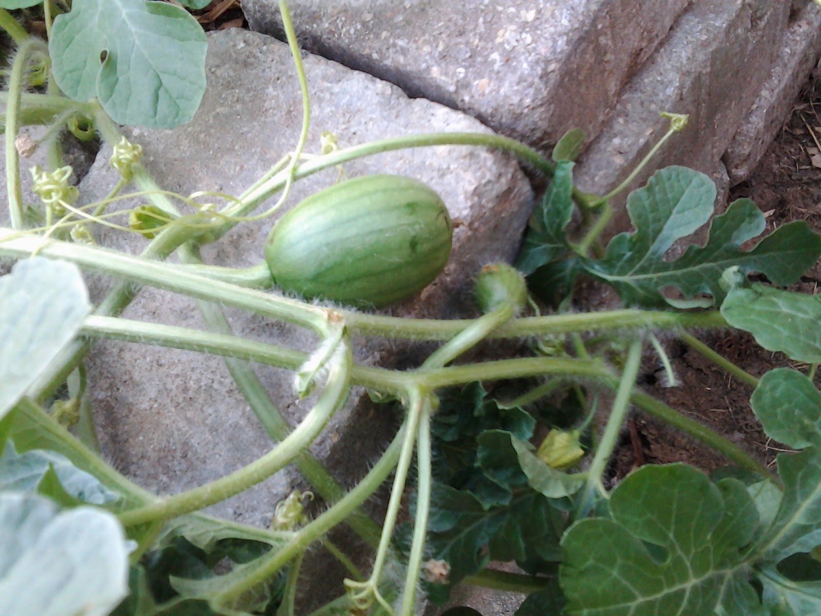 Baby cantaloupe, same story as watermelon, looking great now just need to keep them watered!