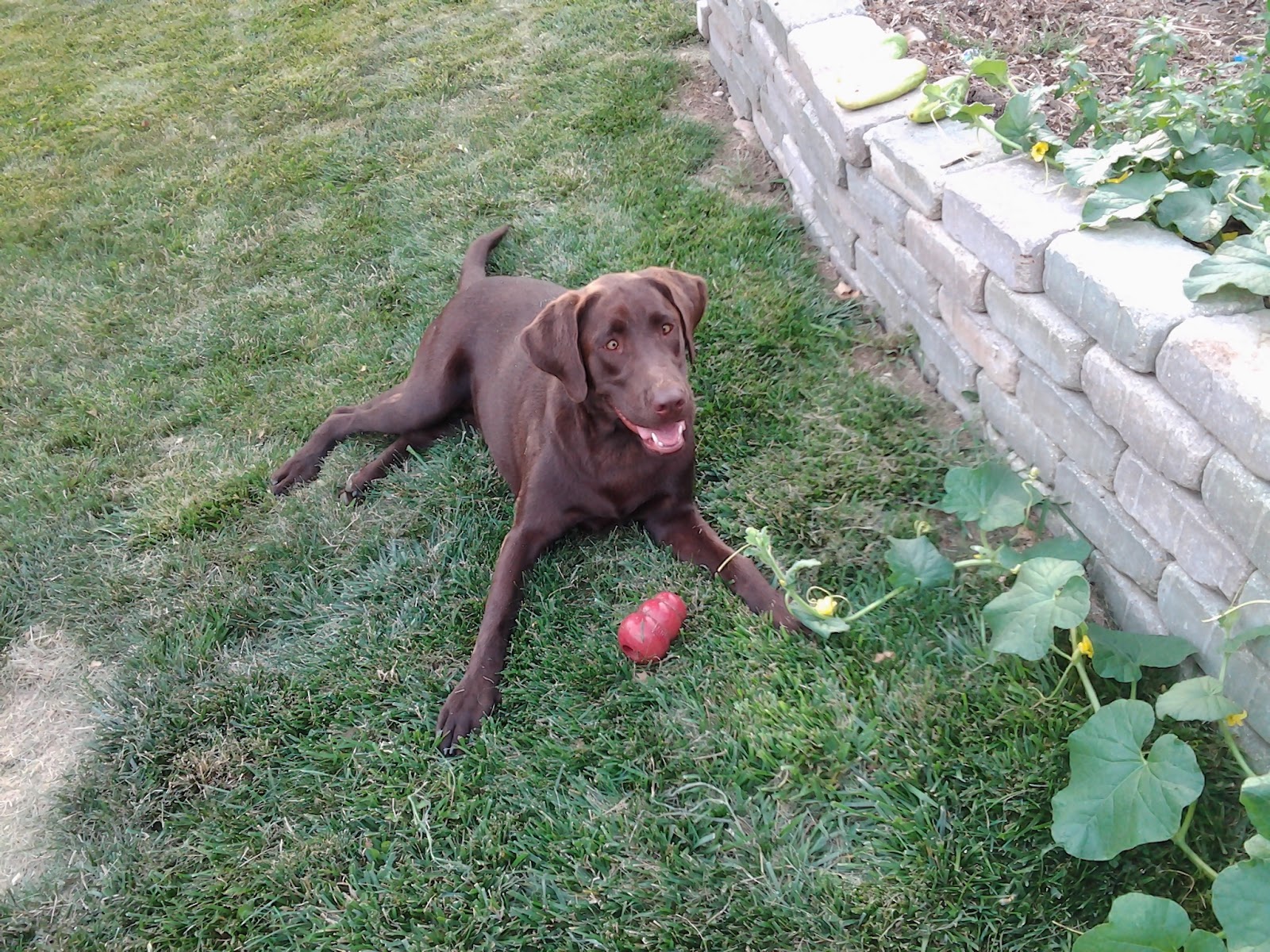 My gardening partner. Scarlet is the only one brave enough to put up the heat with me outside while I water, weed and harvest.
